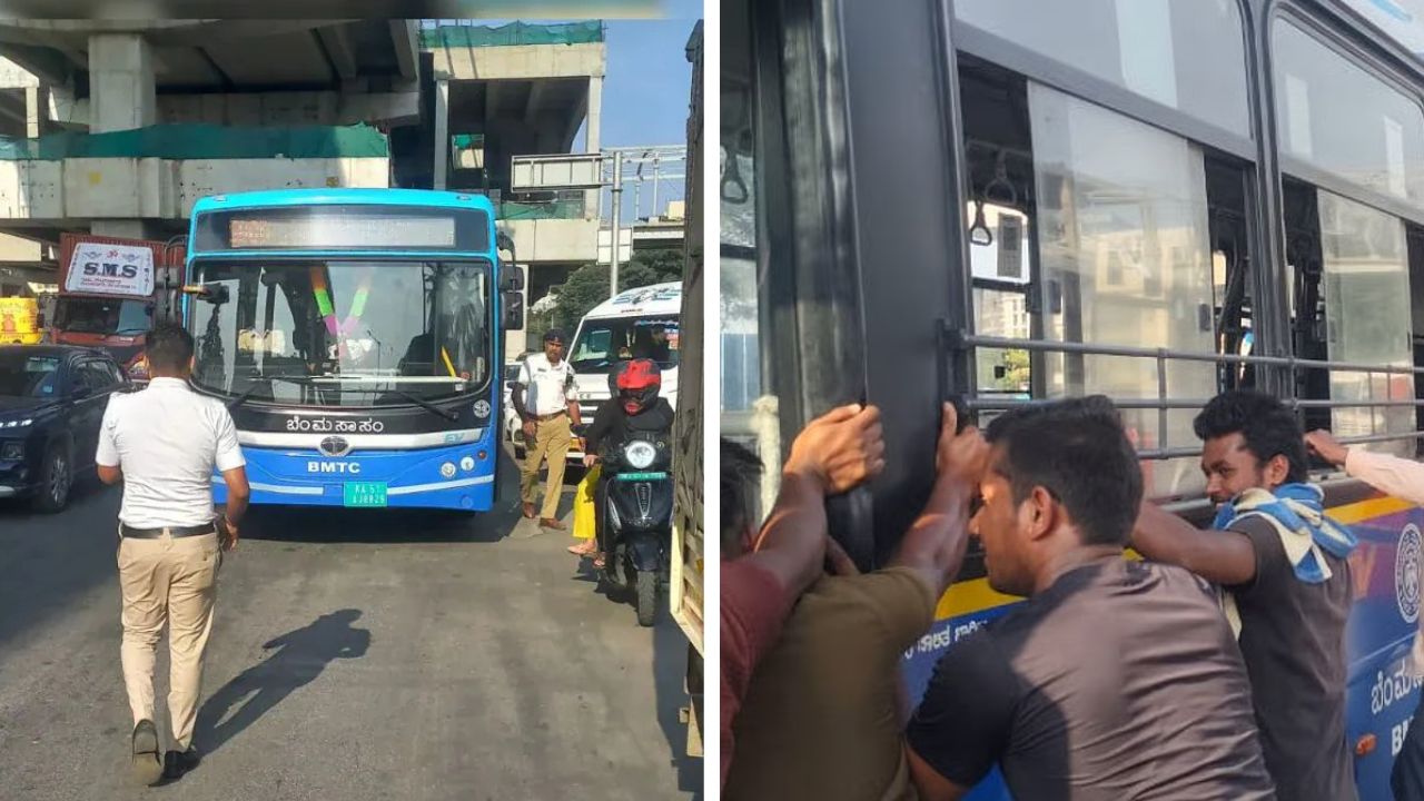 Traffic stopped completely along the Silk Board Junction-KR Puram stretch of the Outer Ring Road (ORR) for over four hours on Tuesday evening after a BMTC Bus broke down near a busy intersection. This heavily impacted thousands of office workers on their way home. Vehicular movement was already slow because the service road was closed and white-topping work was ongoing on Panathur Road.
