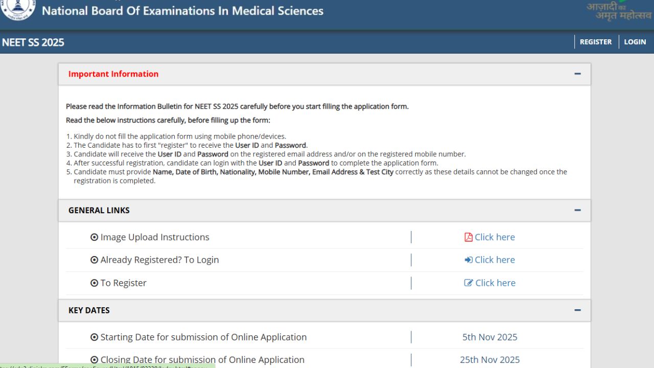 - Click on the ‘NEET SS 2025 Registration’ link on the homepage.