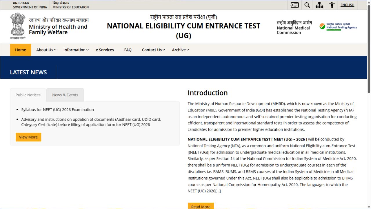 The NEET UG 2026 syllabus has been released. Candidates can check and download the NEET UG exam syllabus on the official website. To download the NEET UG syllabus for 2026, candidates should visit the official website and click on the NEET syllabus PDF link.