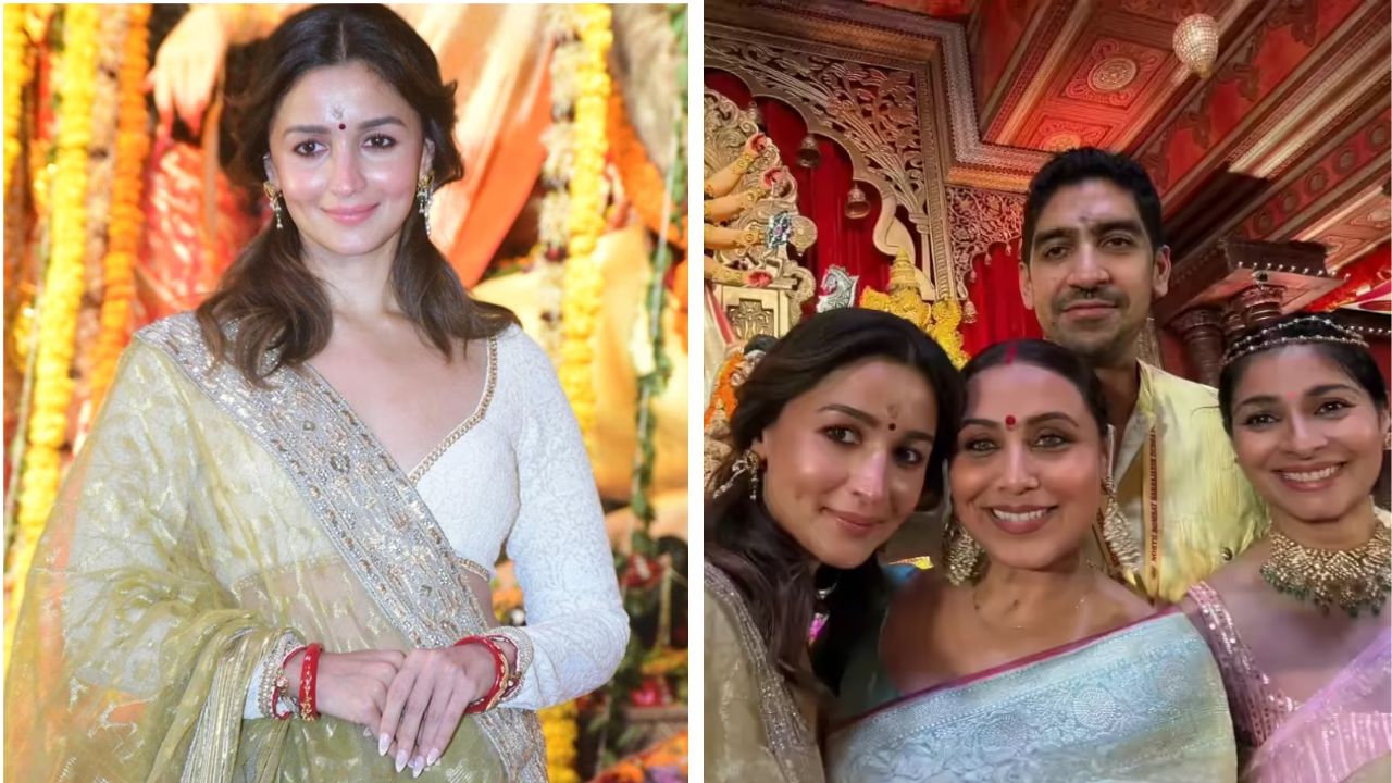 There are some people whose presence can light up a room, and Bollywood star Alia Bhatt is one of them. On Maha Navami, Wednesday, she once again showed her charm as she visited the North Bombay Sarbojanin Durga Puja pandal of the Mukerji family. She shared warm moments with actor Rani Mukerji and her director cousin Ayan Mukerji.