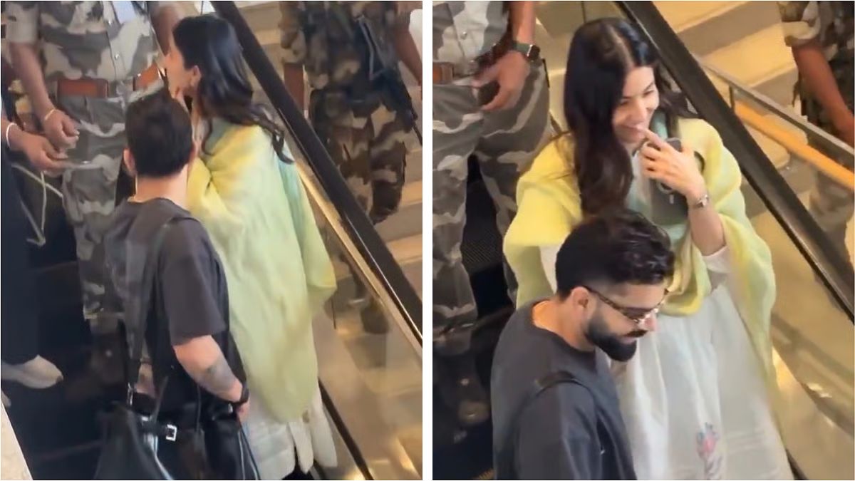 Virat Kohli and Anushka Sharma seen traveling from Bangalore to Delhi. Videos and photos of them are appearing online. This is their first public appearance since he received backlash for liking Liz Laz’s photo. They both seemed to dressed comfortably and looked relaxed with each other. They are heading to Delhi during the 2026 IPL season. It seems likely that they are making this trip to visit Premchand Maharaj in Vrindavan. The couple often goes there to seek his blessings.