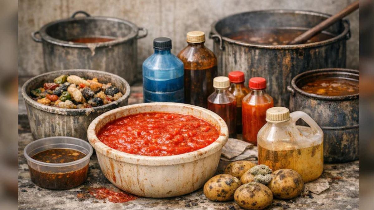 While inspecting a restaurant, officials discovered large amounts of suspicious sauce sold in containers labeled as tomato ketchup. According to various reports, this product was not made from tomatoes. Instead, it contained synthetic dyes, acids, and other cheap chemical additives to give it a tomato-like appearance.
