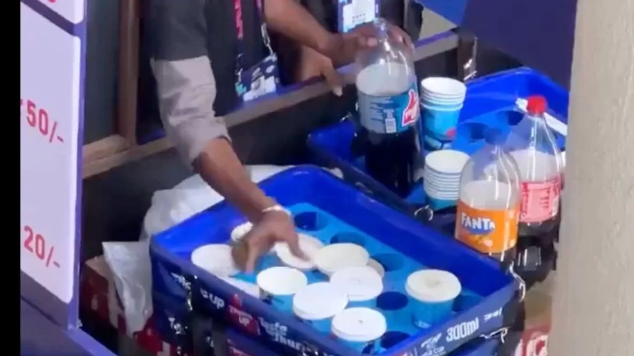 The video, shared on Instagram and other social media platforms, revealed questionable practices at the stadium. The clip shows vendors or staff collecting leftover Thums Up soda from used cups and pouring it back into empty small plastic bottles.