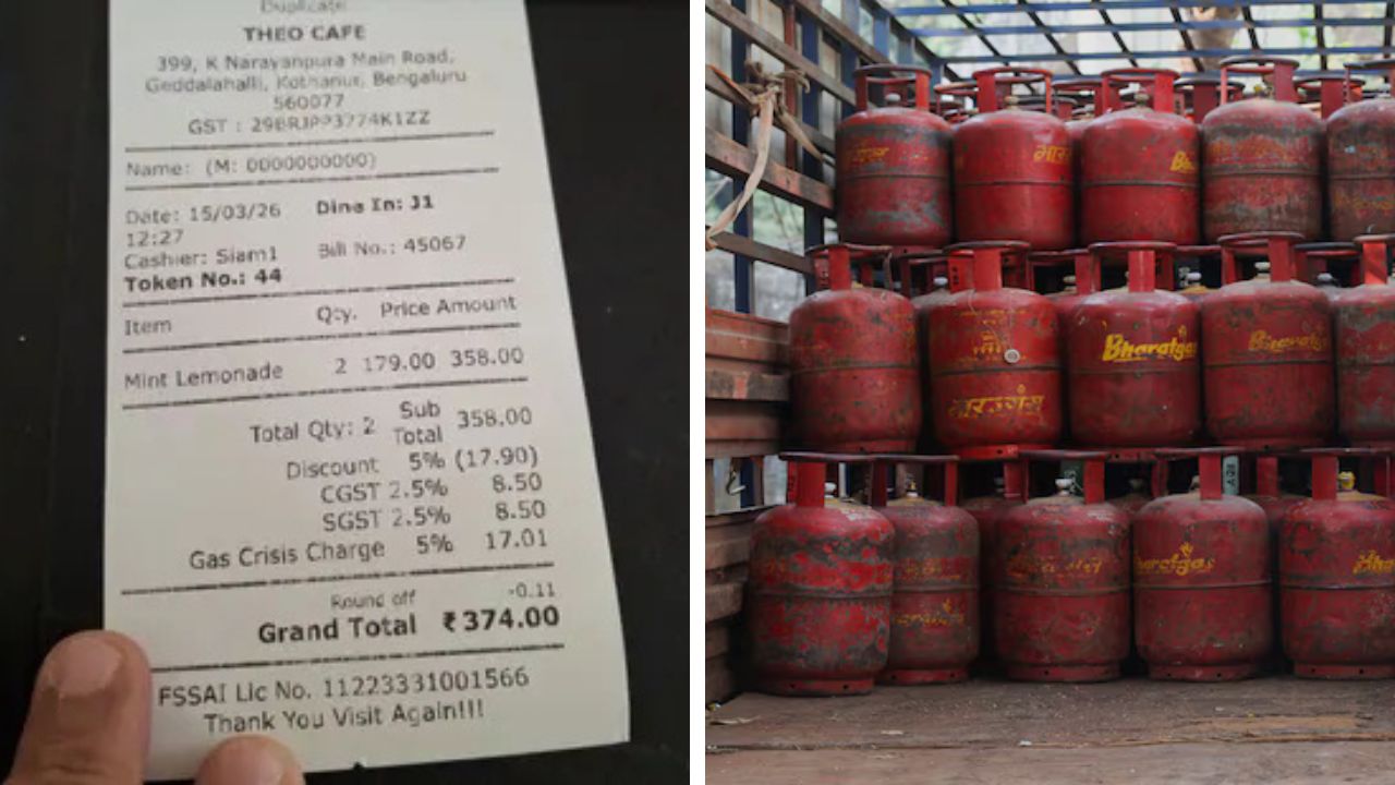 Amid the ongoing LPG shortage in parts of India, a bill from a café in Bengaluru went viral on social media after it included a “Gas Crisis Charge” on a customer’s lemonade order.