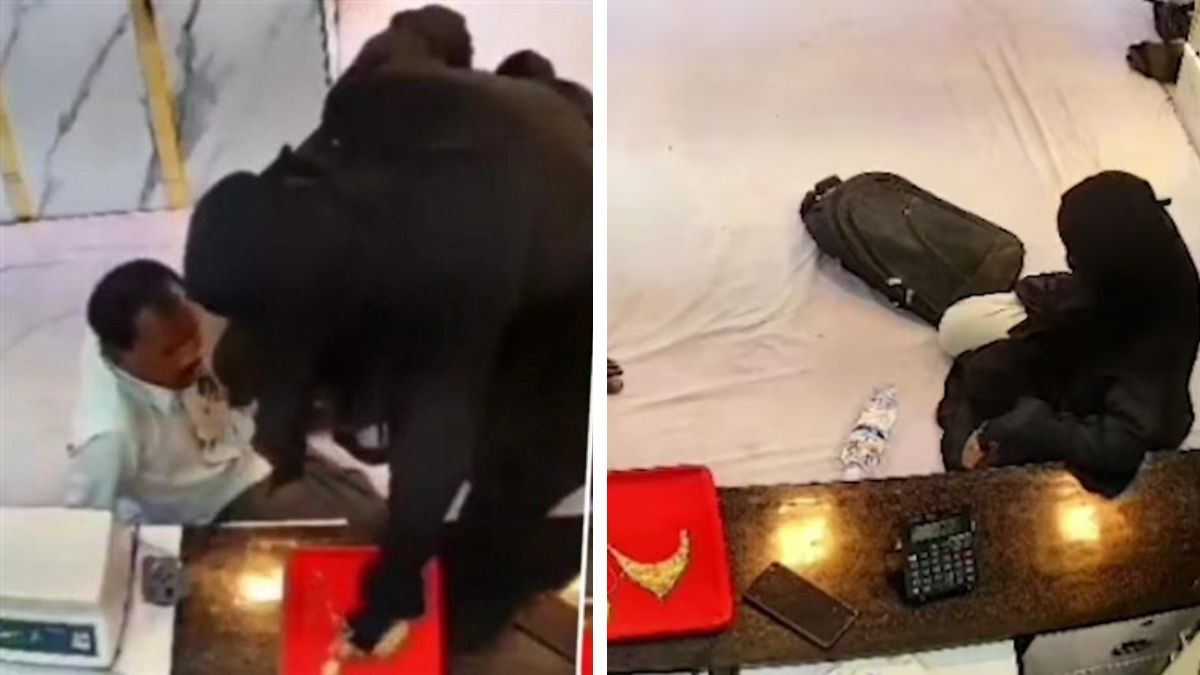 The incident happened around 2 PM on Thursday at a store in the Agarwal Complex, under the Rudauli police station’s jurisdiction. CCTV cameras inside the shop captured the entire event.