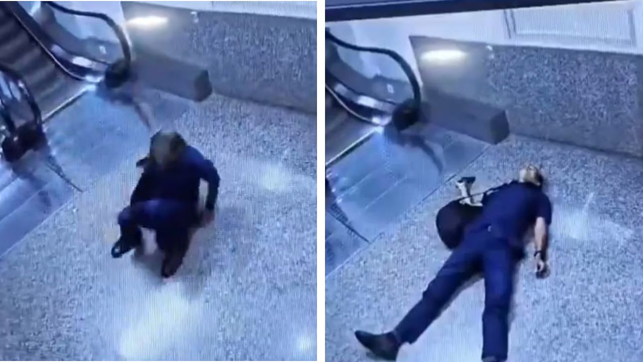 The deceased has been identified as Rajesh Kumar. The video shows that Kumar arrived for his duty at the court around 9:22 am. After greeting his colleagues, he moved towards a escalator but suddenly falls on the floor.