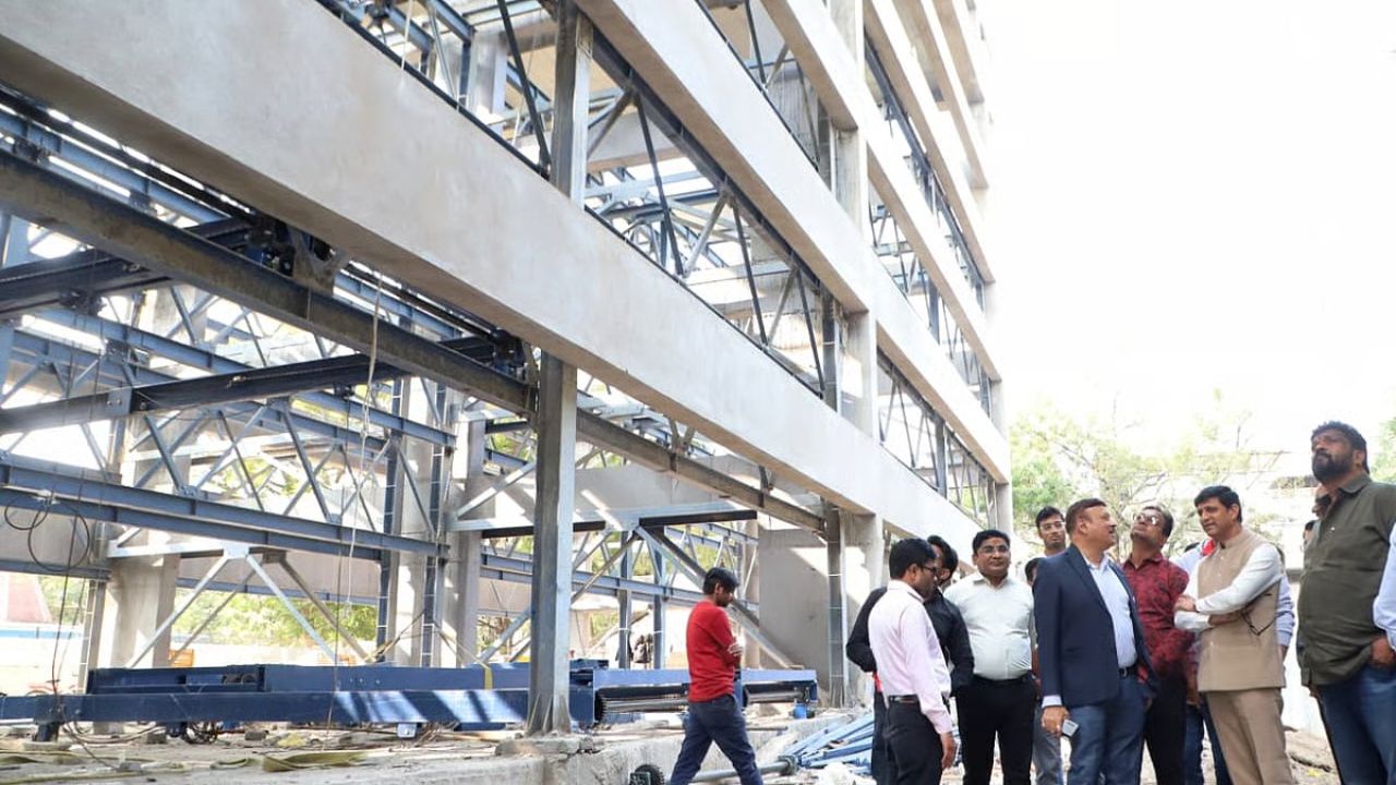 Mayor Pushyamitra Bhargav inspected the multi-level parking project under construction on Adarsh Road in the Indore and announced that it will open for public use by April.