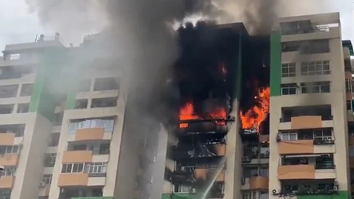 Fire broke out in high rise residence at Gaur Green Avenue society in Ghaziabad Indirapuram area. The black smoke rose into sky, and cause panic among residents. The fire starts in multi storey tower, with images show the flames and heavy smokes come from buildings.