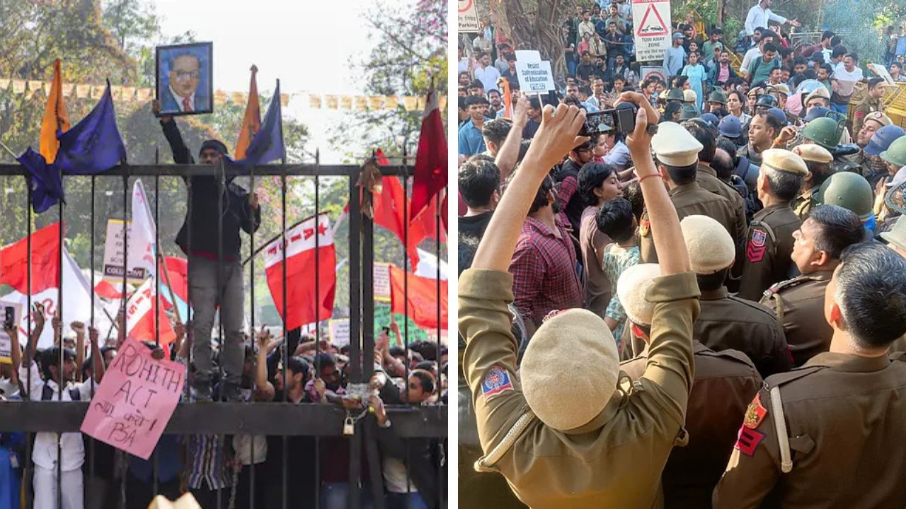 Fourteen students from JNU were arrested after a protest march turned violent with the Delhi Police on 26 February 2026. The demonstration, organized by the JNU Students’ Union, led to injuries for both police officers and students. Those arrested included current and former union leaders. An FIR filed at Vasant Kunj North Police Station under several sections of the Bharatiya Nyaya Sanhita.