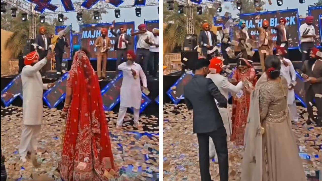 A ceremony video from Tarn Taran has gone viral. It shows bride standing at the venue as notes are thrown on her. This is a common gesture at many Punjabi weddings. Guests also seen dancing to music as the floor gets covered with cash, while many others toss money into the air.