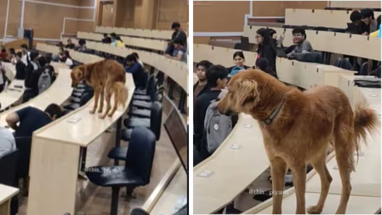 A light-hearted moment from the campus of IIT Bombay has grabbed the attention of social media users after a student shared a video of a dog standing confidently on a classroom table. The clip, posted on Instagram by Piyush Jaiswal, shows a dog perched on a table inside what looks like a lecture hall. Several students can be seen around the room, watching the unexpected visitor with surprise and amusement.