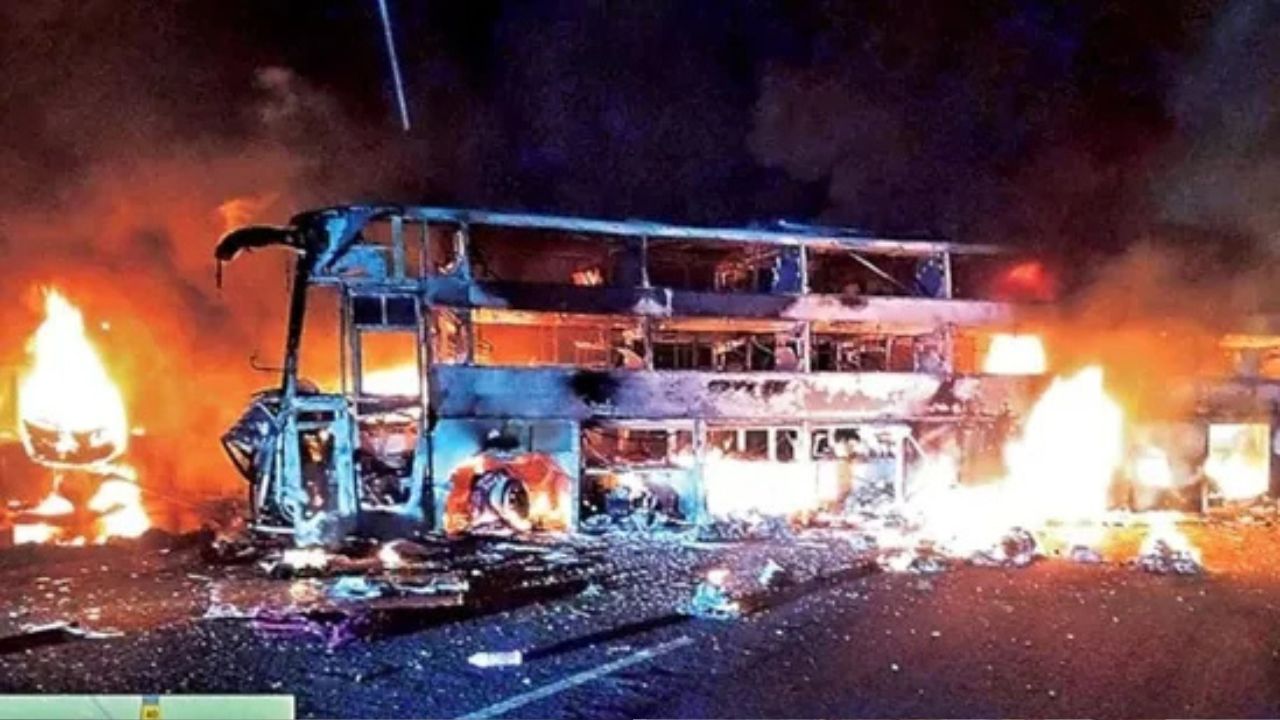 The bus crossed the central divider and crashed into an oncoming container lorry. The collision sparked a massive fire that quickly engulfed both heavy vehicles. The dead included the bus driver, the lorry driver, and the lorry cleaner. They were trapped in the wreckage, and their bodies were burned beyond recognition.