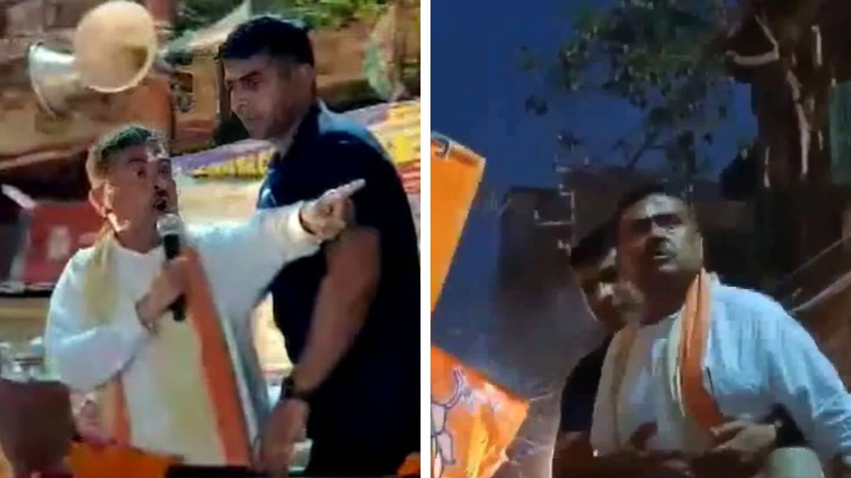 Leader of the Opposition in the West Bengal Assembly, Suvendu Adhikari, lost his temper on Wednesday after TMC workers disrupted a road show in the Bali assembly constituency of Howrah district. The event was organized to support BJP candidate Sanjay Singh. Adhikari, who is running for both the Nandigram and Bhabanipur constituencies, was seen criticizing TMC workers as they chanted “Jai Bangla” during the rally.
