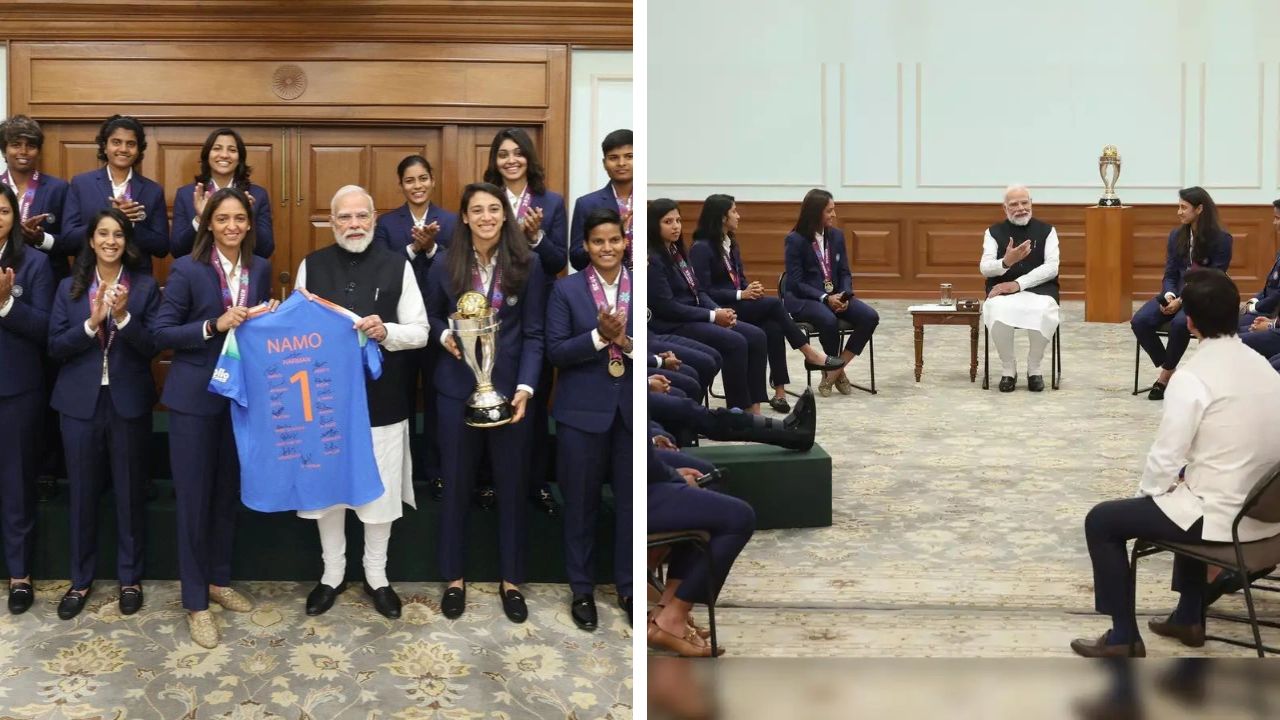 PM Modi welcomed the Women’s Cricket World Cup Champions, to his official residence at 7, LKM. The team, led by Harmanpreet Kaur, arrived in the national capital last night for their meeting with the PM.