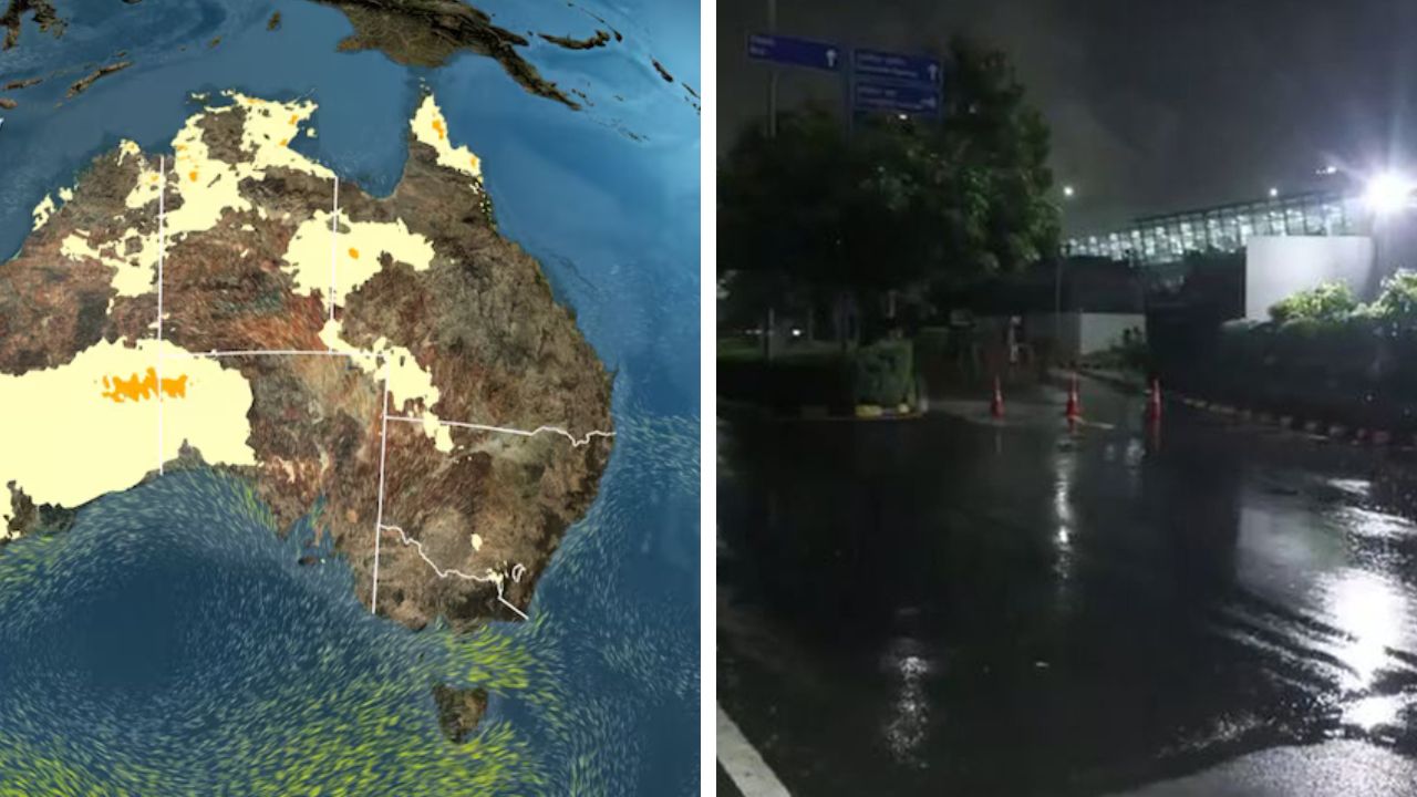 Visuals from Indira Gandhi International Airport showed light rain. At 2:30 AM IST, Delhi had a temperature of 21.8°C, and calm winds added to the still and foggy atmosphere.